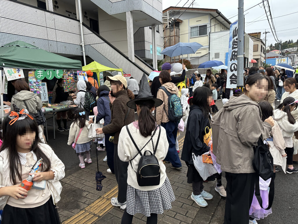 いつもは「市民協働事業提案制度」の活動を紹介するコーナーですが、今回は商店会主導の「頑張る商店街応援事業」です。今年のハロウィンは「肉」をテーマに様々な出店がありました。時折お湿り程度の雨がぱらつきましたが、何千人もの住民の皆さんが通行止めの許可をいただいた道路にあふれかえりました(トップ画面参照)。