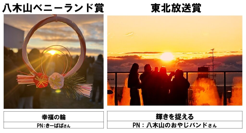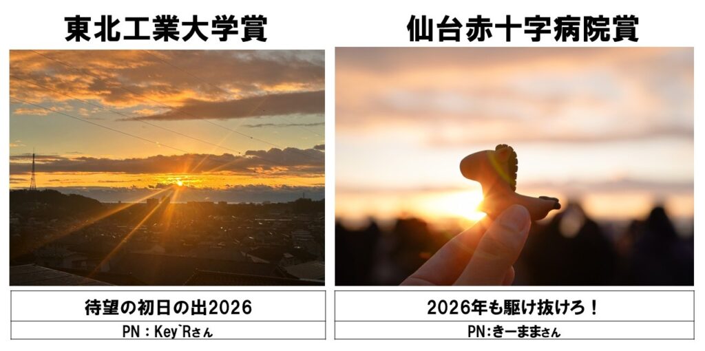令和8年度の「初日の出写真コンクール」の受賞作が決まりました。みなさんおめでとうございます。2月14日(土)9:30~八木山市民センター3階で表彰式と各組織・団体からの記念品贈呈式を行います。受賞されたみなさんは、ぜひお越しください。